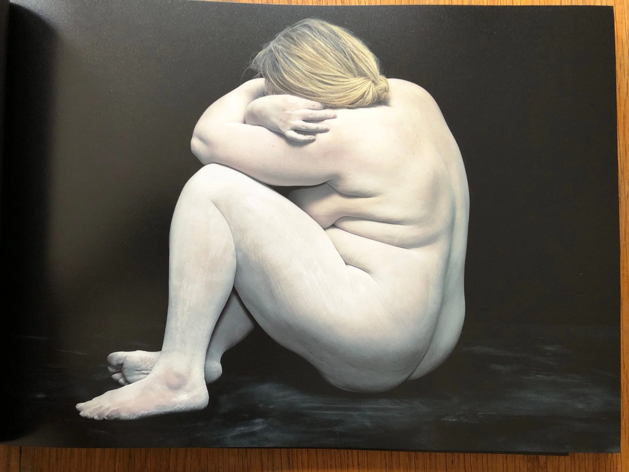 Nude bodies painted white, faces turned away from the viewer. This is how Nadav Kander photographed the sitters. Accessories are minimal, as is the aesthetic, yet at the same time the arrangement makes the mostly voluptuous bodies seem baroque. One is reminded of the portraits of Elizabeth I with their white lead “masks.” In Kander’s precisely lit images, with their exquisite colors, white mice run across white skin, a small bird seems tiny perched next to an odalisque.
